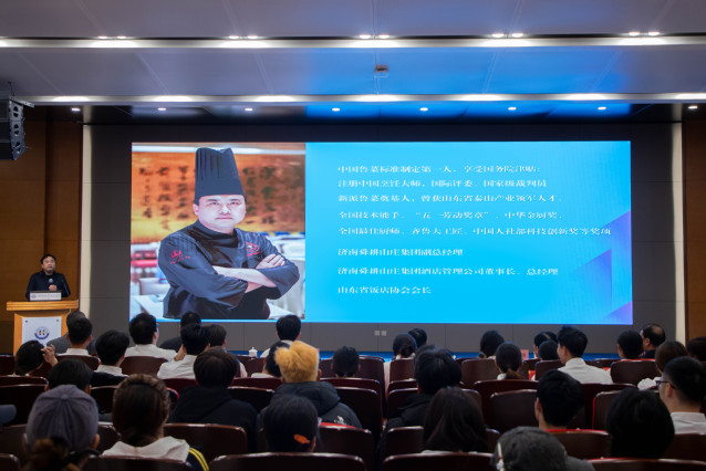 10月22日上午,烹饪学院邀请泰山产业领军人才、山东省饭店协会会长、济南舜耕山庄集团副总经理、舜耕山庄酒店管理公司董事长黑伟钰到校举办题为“新鲁菜的创新发展:守正齐鲁味,创新向未来”的海斯曼讲坛。